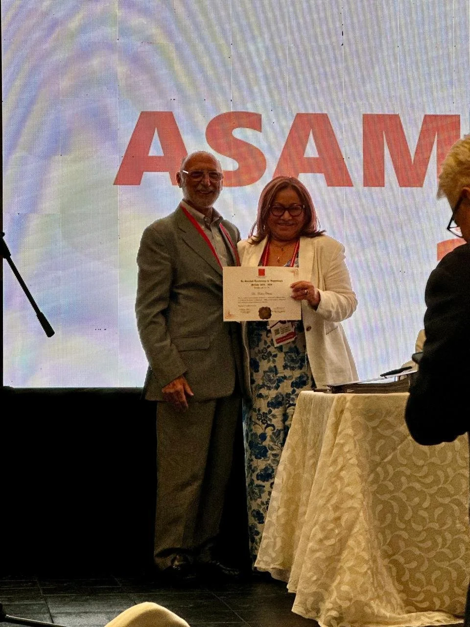 Acercamiento con la Sociedad Argentina de Hematología (SAH), octubre 2024, representada por su presidenta, Dra. Juliana Rolón, durante las 5tas Jornadas Latinoamericanas de la SAH. Como resultado, se iniciaron gestiones para obtener becas en los cursos ofrecidos por dicha institución.